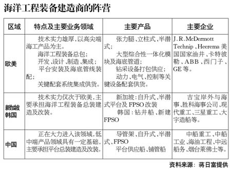 不少业内人士呼吁,国家要有海洋开发的总体战略,使其成为今后30年我国经济增长的一大亮点,建议国家相关部门在“十二五”发展规划中把海洋工程单列出来,成立主管部门和海洋油气装备行业方面的相关团体,统筹行业发展。 从各国的发展看,许多国家海洋油气装备业的大发展,都是借助于政府和国家政策的支持。如新加坡、韩国凭借国家的支持和雄厚的修造船实力在海洋油气装备建造领域处于领先地位;欧洲所有的海洋工程展会都是政府出资等。 他们认为,海洋油气装备是高技术、高附加值的产品,科技含量高,属于装备领域较为高端的产品。同时,它又面临着广阔的市场前景,发展潜力大,对整个船舶工业和装备制造业都有带动作用。随着海洋经济的深入发展,对海洋工程装备的需求将会越来越大,假如我国能够占到30%,投入500亿,将有1000多亿人民币的产值量,把配套算进去就是1500亿-2000亿,确实可以作为一个新兴产业来培育,使我国在国际主流装备市场占有一席之地。