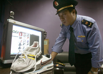 北京市工商人员查获利用互联网出售假冒耐克运动用品的个体户。 |