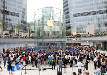 2010年7月,位于上海陆家嘴的中国内地第二家Applestore开业,人山人海。苹果公司对待中国市场的态度与中国苹果迷的热情形成了鲜明对比。新华社记者 凡军/摄 |