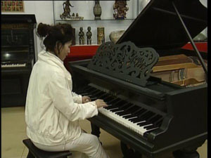近日,在中国黑龙江省牡丹江市步行街古玩市场内,两台“古董”钢琴引起人们关注。据专家判定,这两台钢琴是前沙俄皇帝的御用钢琴,至今已历经一个多世纪的岁月。 据了解,这两架钢琴,一架为三角钢琴,一架为立式钢琴,它们的拥有者是牡丹江市的收藏爱好者裘宪涛。据他介绍,这架已经150岁的三角钢琴品牌是别克(J.BECKER),琴谱架由雕刻精美的俄文组成,琴上鎏金镶嵌了沙俄双秃头鹰国徽,并且在琴弦下方写有古俄文字样。经专业人士鉴定,这两台钢琴属于前沙俄皇帝,生产年份是1860年。 另一台立式钢琴的品牌为施罗德,琴盖上镶嵌的三个徽章,从左到右分别代表着俄罗斯沙皇的私人皇旗徽章、沙俄双秃头鹰国徽和沙俄的民族徽标。钢琴的背面印有俄罗斯第一钢琴厂的厂商说明书,上面有“皇家钢琴专门制造者”的字样。据记载,此台钢琴的离厂年份是1885年,距今已有125年的历史。 收藏这两架钢琴的裘宪涛对记者说,能够把这两架钢琴维护起来,是对社会的一种义务。他会非常小心的爱护它,保养它。 在现场记者还看到一些慕名而来的钢琴爱好者,他们对这两台“古董”钢琴爱不释手。牡丹江教育学院高级钢琴教师李明认为,这两台钢琴无论从音色、柔韧程度还是明亮力方面都比国产钢琴好很多,弹了一曲感觉很过瘾。 据专业人士介绍,这两台古钢琴经过一个多世纪的洗礼仍保存完好,依然能弹奏出美妙的琴音,实属不易。