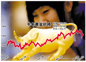 鉴于下半年的货币贬值预期仍强,欧洲债务危机也不可能在短时间内得以解决,支持金价牛市行情的因素仍在。中国黄金协会副会长张炳南认为,金价下半年走势仍以高位振荡与振荡走高为主,在操作方面,低位吸纳仍是明智之举。 对比2008年~2009年的下半年走势,受饰金需求增长的推动,金价走高幅度一般能达到25%~35%。对于2010年行情,即使算上五六月份反常走高的幅度,下半年金价也可行至1350美元一线;如果乐观估计金价能走高25%的话,或能上探1500美元。