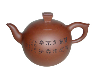 今年5月,世博会在上海隆重举行,沪上知名壶艺设计师谈桃林先生以紫砂为媒,借世博寓意,创意设计了“世博壶”和“玉兰壶”,为这场万众瞩目的盛会献上了一份贺礼,同样引起了收藏爱好者的浓厚兴趣。 “世博壶”(右图)通体圆润如球,好比你我生活之家园——地球。壶身一侧,由中国书法家协会主席张海题书的孔子名言:“有朋自远方来不亦乐乎”,另一侧则为陶泠先生绘制而成的上海市市花玉兰花,该壶紫砂泥质地优良,外形线条流畅,涵义深远。“玉兰壶”(左图)壶嘴与壶柄的设计以上海市市花白玉兰为主体。两朵娇媚玉兰依偎在好似地球的壶身两侧,象征在上海举办的世博会将沪上海派文化洒向世界人间。壶顶站立着本届世博会吉祥物海宝,娇小可爱的海宝居于地球之顶端,跳起欢乐的舞蹈迎接五湖四海的朋友。壶的两侧也进一步引申出了本款茶壶设计师的初衷。一侧由中国书法家协会主席张海题书,另一侧则由著名画家张桂铭所绘的燕子飞跃图,象征着通过本届世博会要将中国文化播撒浸润世界文化土壤之中。 “字依壶传,壶随字贵”,书画名家参与紫砂壶的创作,往往受到收藏拍卖界的青睐,“相明石瓢壶”的天价再一次说明了这个道理。