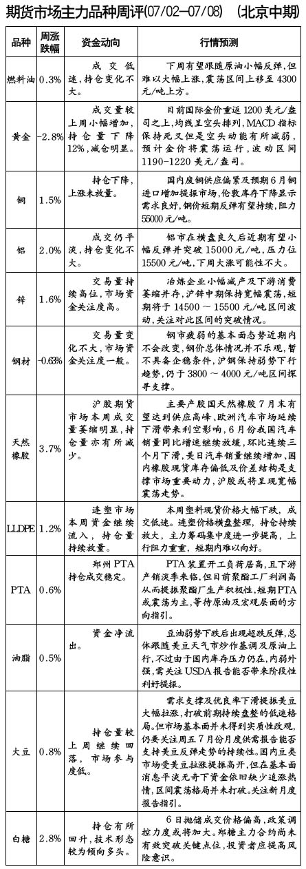 期货市场主力品种周评[07/02-07/08]