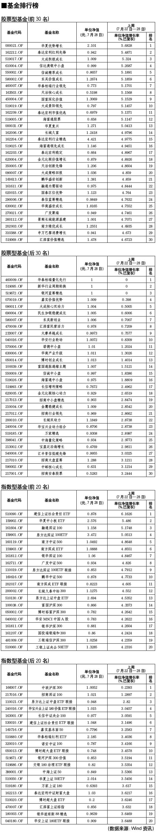 股票型基金排行榜[2010-07-30]