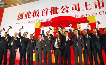 本周三,华伍股份(300095)、易联众(300096)、智云股份(300097)、高新兴(300098)正式上市交易。至此,创业板上市交易个股数已增加至97只。此外,乾照光电(300102)、达刚路机(300103)、乐视网(300104)首次公开发行股票也已成功过会,将于7月30日进行路演。至此,创业板在运转10个月之后,上市家数将满100家。 与此同时,来自深交所的数据显示,截至7月29日,创业板已有8家企业公布了2010年上半年业绩报告。分析显示,在已公布中报的8家企业中,净利润增长在50%以上的只有一家,净利润增长在30%以下的占到了一半,甚至还有一家出现了业绩大幅下滑。 与此同时,除台基股份外,创业板共有25家企业发布了中期业绩预告或快报,其中业绩预减的就已经达到了9家,占比达到了35%。而在此之前,网宿科技(300017)、华谊兄弟(300027)和朗科科技(300042)则早在一季报中就预计2010年中期净利润将出现大幅下滑。与此同时,WIND统计显示,截至29日,A股市场共计有1021家上市公司发布了业绩预告,其中预增381家、略增169家、继盈88家、扭亏133家,预计增长的总体占比为75.5%。总体来看,创业板中报业绩可能不如大盘,业绩实现大幅增长的也不占多数,并没有体现出所谓的“高成长性”。 国泰君安首席经济学家李迅雷表示,从国外市场的情况来看,由于存在高风险,创业板的平均市盈率一般低于主板,而中国恰恰相反,估值过高已经成为了创业板的通病。正是由于这种高市盈率的发行,使得企业通过创业板上市募集资金的冲动极为强烈,在这种情况下自然无法避免上市企业出现包装色彩。而创业板公司本身一般不具有市场垄断性,盈利水平极不稳定,一旦外部市场环境出现变化,企业业绩出现大幅下滑也在情理之中。