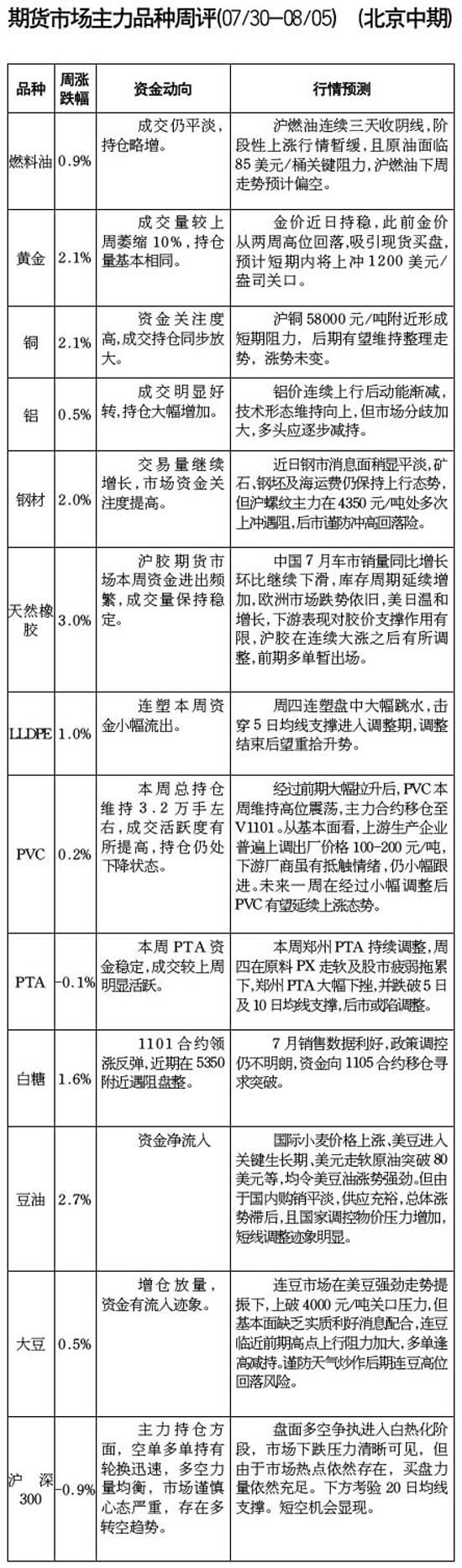 期货市场主力品种周评[07/02-07/08]