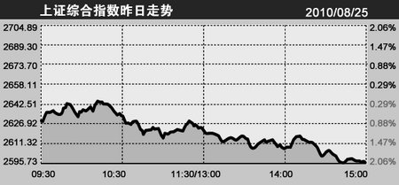 受前夜美股大跌以及关于“楼市调控加码”等利空传闻的影响,A股市场昨日出现大幅下挫,上证指数不仅跌破多条短期均线,同时也再度回到2600点整数关口下方,跌至近两周来收盘新低。