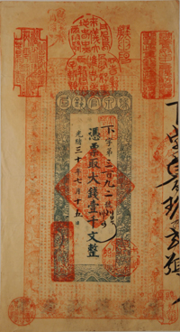 日前,美国包克家族授权爱秀集团将已故著名钱币收藏家霍华德·富兰克林·包克先生收藏的一枚珍贵纸币“豫泉官钱局大钱壹千文”捐赠给中国印钞造币博物馆。