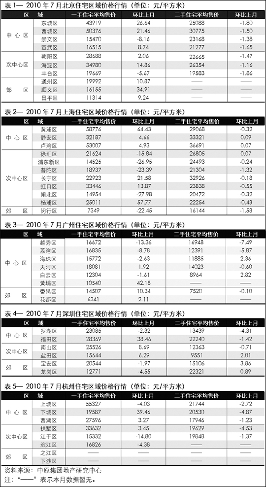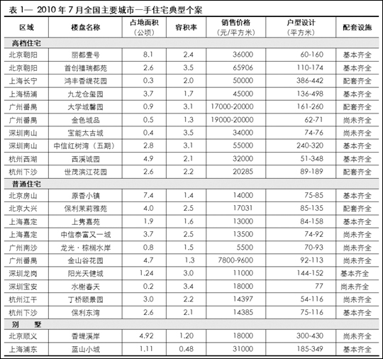 2010年7月全国主要城市一手住宅典型个案