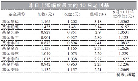 昨日在股市行情向好和高价封基领涨的带动下,老封闭式基金大幅上涨,平均涨幅达到了2.16%,明显超过了上证指数和沪深300指数当日涨幅。
