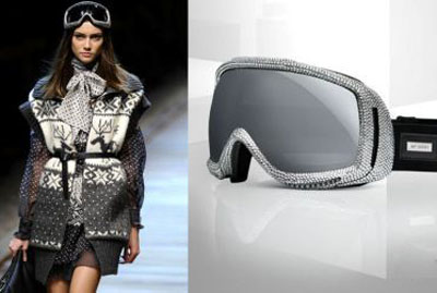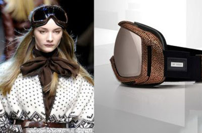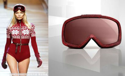上一季,飞行员装扮是潮流的主旋律,飞行员帽子、翻领夹克夹克以及大大的墨镜。而这一季,斯堪的纳维亚风格的滑雪look才是最佳之选。2010秋冬D&G秀场是最佳的诠释,模特身上的最大亮点莫过于镶有水晶的滑雪镜了。