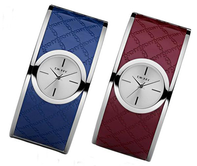 DKNY 2010秋冬推出斜纹logo系列腕表于宝蓝、红、黑、金及银色金属质地表腕上刻印的品牌标志组成优雅的棋盘格纹。表面及表带都为不锈钢材质打造,正面有着斜logo的连续图样交叉设计,扣环式的表带可随手腕大小调整。在3、6、9、12点钟方向有着银色的小时刻度显示,展现简约的时尚风格。DKNY 斜纹logo系列腕表完美诠释现代女性典雅的都会新风貌,是不容错过的时尚单品。