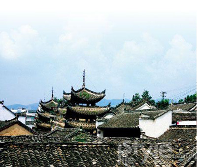 俯瞰小镇,屋角飞檐,层层叠叠,各不相同。