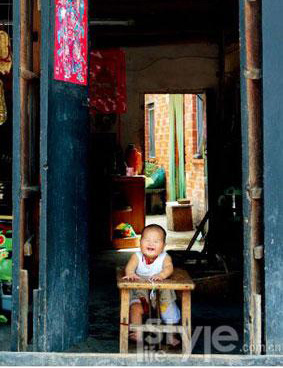 门口晒太阳的胖娃娃,一脸的喜气洋洋。
