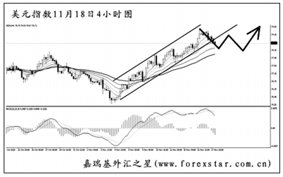 美元指数自低位反弹的力度强劲,已经将日线图道氏理论最后一个显著高点78.35升破,同时,均线系统也被突破,中线的跌势暂时告一段落。从图上看,美元指数运行在一个上升通道当中,目前价格小幅跌破通道下沿,预计后市展开一小波下调的概率较大,但在4小时图均线系统的依托下有望再度创出新高。