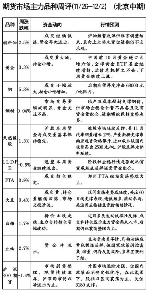期货市场主力品种周评[11.26-12.2]