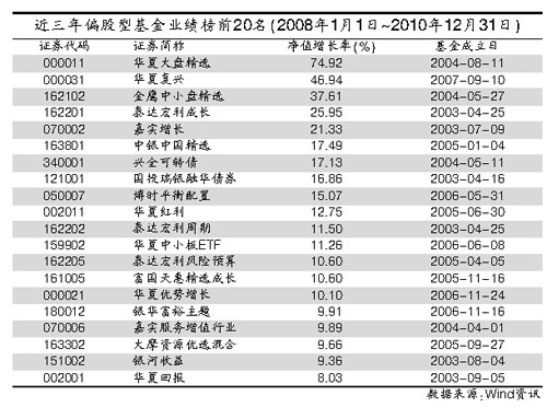 纵观基金三年来的变化可以发现,偏股型基金阵营中,首尾业绩相差高达130个百分点。业内人士分析,以三年为尺度来考察一只基金业绩并不短,如果一只基金持续在业绩排行榜中垫底,那就明显暴露出了带队基金经理的操作水准,和基金公司整体的投研实力并不理想。