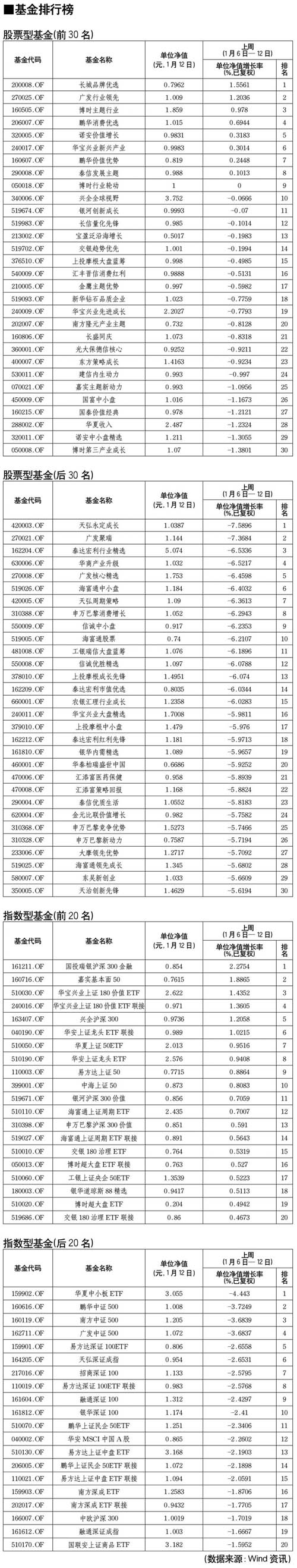股票型基金排行榜[2011-01-14]