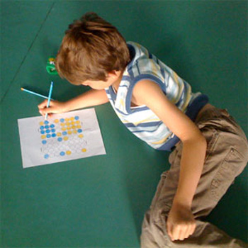 不过,在孩子们看来,这更像是他们与大黄蜂之间的一场游戏。洛托为他们提供了“游戏工具”——一个模拟花朵的有机玻璃面板。面板上有4个方阵,每个方阵中有16个圆圈。这些圆圈可以改变颜色来模拟花朵,圆圈中间有凹槽,用于盛放模拟花蜜的糖水。