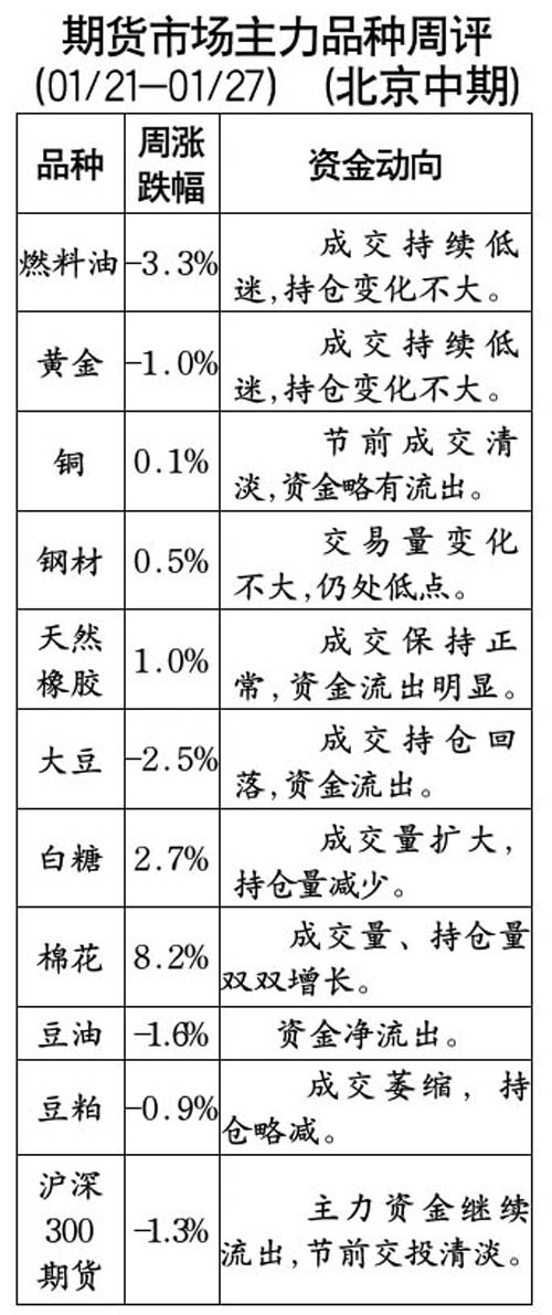 期货市场主力品种周评[1.21-1.27]
