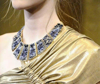 今年香奈儿推出第九个系列,以“巴黎-拜占庭”为主题,同时庆祝土耳其伊斯坦堡开幕的第二家精品店。宛若华丽绚烂的奥斯曼帝国宫廷风格,拉格斐重新运用浓郁色彩和珐琅、经典象征物中的古典金色元素,加入午夜蓝与矿物蓝、深紫色、紫罗兰与绿色,呈现出摩登、魅惑、迷人的拜占庭帝国狄奥多拉女皇。