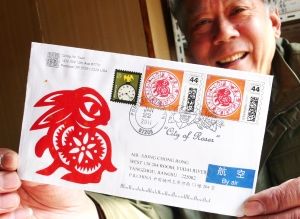 昨天,扬州剪纸大师熊崇荣收到了一封从大洋彼岸邮寄过来的首日封。让熊崇荣欣喜的并不是收到美国朋友的首日封,而是首日封上那一枚44美分的个性化邮票。