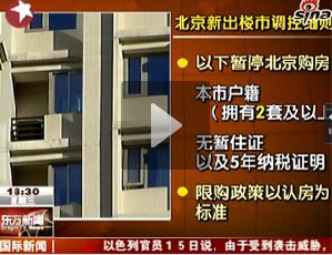 1、二套房房贷首付比例提高至60% 2、对个人购买住房不足5年转手交易,统一按销售收入全额征税 3、本地2套房和外地1套房家庭将停购 4、商业银行暂停发放居民家庭购买第三套及以上住房贷款 5、囤地捂盘房企停发股票债券停贷 6、落实住房保障和稳定房价工作的约谈问责机制 7、在一定时期内,要从严制定和执行住房限购措施8、坚持和强化舆论引导[详细]