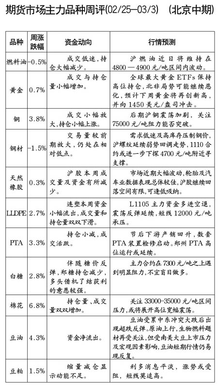 期货市场主力品种周评[02.25-03.03]