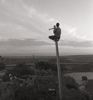 王征《最后的西海固 接电的汉子》 1998年摄 银盐纸基