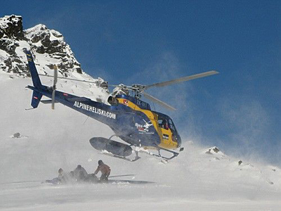 在直升机和教练的帮助下,滑雪者可以轻松进入遥远的雪山地带而不必耗时耗力地冒险徒步抵达目的地。
