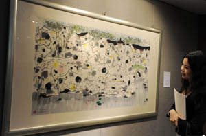 媒体预展上展示的吴冠中1980年所作《狮子林》,估价500万至800万港元。记者 宋振平/摄 |