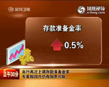 央行18日晚间宣布,25日起上调存款类金融机构人民币存款准备金率0.5个百分点。这是央行年内第三次上调存款准备金率,也是去年以来第9次上调存款准备金率。此次上调后,大型商业银行存款准备金率已达到20%的历史高位。