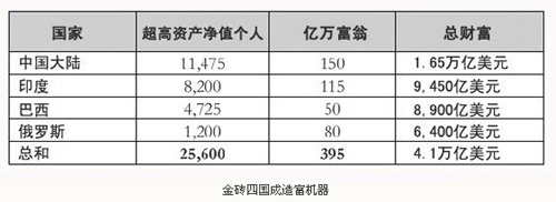 但全球范围内亿万富翁和有心成为亿万富翁的超富人口数量增长最快的,却有可能是金砖四国,而不是美国或欧洲。
