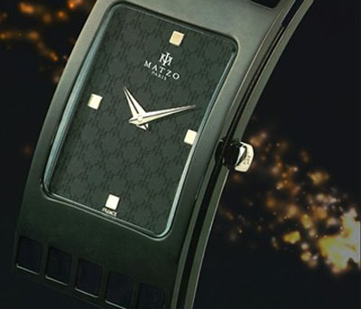 PARIS公司限量推出巴黎美爵戛纳风情系列手表,该腕表的表盘设计简洁大方,在黑色丝绸般的表盘上,采用神秘的金色,勾画出小时和分钟的刻度。金色的指针和MATZO