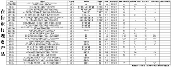 在售银行理财产品[2011-07-15]