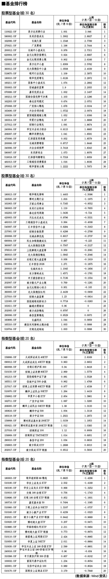 股票型基金排行榜[2011-07-15]
