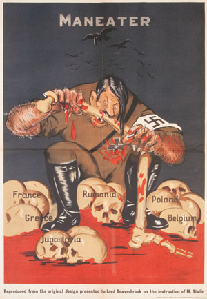 日前,在澳大利亚墨尔本市,一幅名为“食人者”的二战英苏宣传海报在澳大利亚(Leski)乐斯奇拍卖行进行拍卖并且以850澳币(约合5500人民币)的价格成交。海报将希特勒描绘为啃食人骨的野兽。新华社发