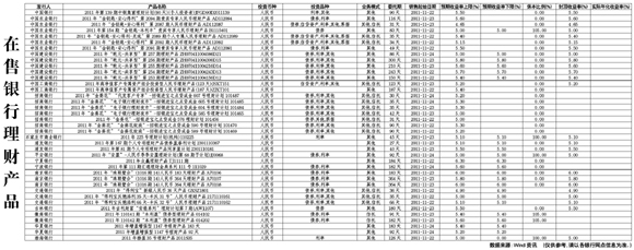 在售银行理财产品[2011-10-21]
