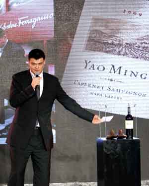 11月27日,姚明在慈善拍卖会上介绍自己捐出的拍品“姚明牌”葡萄酒。当日,“特殊奥林匹克2011年融合慈善筹款晚宴”在上海举行,特奥全球形象大使姚明等明星纷纷捐出实物用于慈善拍卖,拍卖所得将全部通过上海特殊关爱基金会用于国际特奥会在中国特奥的推广。