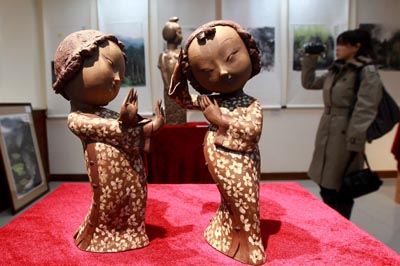 由美中商业协会主办的“美中艺术交流展”日前在上海美中艺术交流中心开幕。来自雕塑、绘画、陶瓷、摄影等艺术领域以及收藏界的近50位中美两国名家在本次展览上集中呈现300多件艺术精品。据介绍,展览还将在纽约、华盛顿、芝加哥、旧金山和北京展出,展期延续一年。