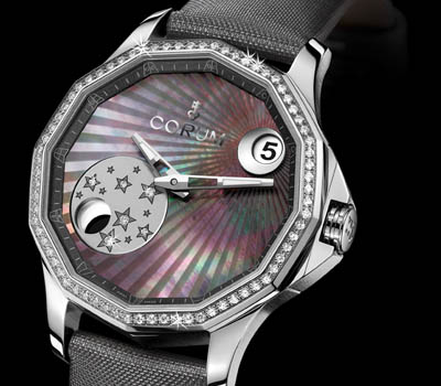 Corum昆仑表全新力作、专为女性而设的海军上将杯里程号38月相腕表,其珍珠贝母表面优美地展现着日月交替的舞曲。此枚腕表除保留了品牌逾50年历史的表款经典象徵外,亦集优雅设计概念及复杂腕表技艺於一体