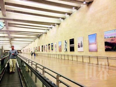 特拉维夫的本-古里安机场是一座非常美丽的机场,出发和到达都要经过一条长长的通道,一边是透明玻璃,一边是石头筑起的高墙,展出许多艺术家的作品,值得驻足欣赏。