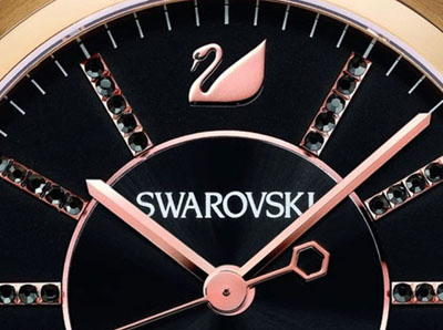 这款别具一格的手表,其42毫米直径的特大表壳,充分展现了纯粹的线条设计。表盘采用经典的圆环造型,上方以手工镶嵌了玫瑰金色Swarovski施华洛世奇天鹅标志。12点以外的其他小时刻均缀有至少一颗仿水晶。每个小时刻度以手工镶嵌含蓄低调的黑矿色仿水晶刻度,加上在六点位置的日期显示窗,皆体贴地为佩戴者提供清晰的时间显示。极致无瑕的圆形黑色表盘,缀有彰显切割特色的时针、分针和秒针。以人手打磨的玫瑰金色PVD圆形表壳上,右侧有利用施华洛世奇专利技术切割而成的防刮黑色陶瓷元素,以及展现24个切割面
