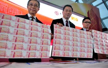 中国人民银行行长助理金琦、中国邮政集团公司总经理李国华、中国银行董事长肖钢及澳门金融管理局主席丁连星等当天也分别在北京及澳门致辞。