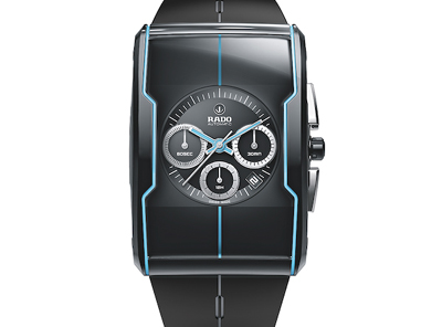 系列腕表自动计时器的成型引人遐想,一组细长的矩形元素和几许柔和的曲线,以一种迷人的方式组合在一起,将现代材质的运用带到了全新的物质极限。由于腕表表壳的棱角状造型以及计时器按钮的无缝设计,将弧形蓝宝石水晶固定在繁复的外壳结构之上,代表了一项严峻的技术挑战。表盘的设计专注于将笔直线条与完美圆周动感呼应,却不失使用的方便性。钢制圆形计数器从圆滑的黑色高科技陶瓷中脱颖而出,与超现代亮蓝色荧光指针以及一条将
