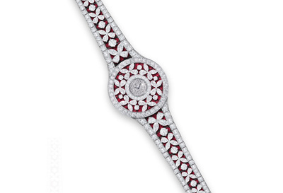 机芯:石英机芯 ▼ 功能:时、分显示 ▼ 宝石:逾230颗钻石及70颗红宝石