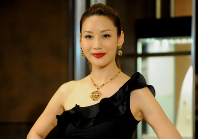珠宝品牌宝格丽在香港中环国际金融中心商场举行媒体预览会,展示最新系列珠宝首饰。图为模特在展示该品牌珠宝新品。