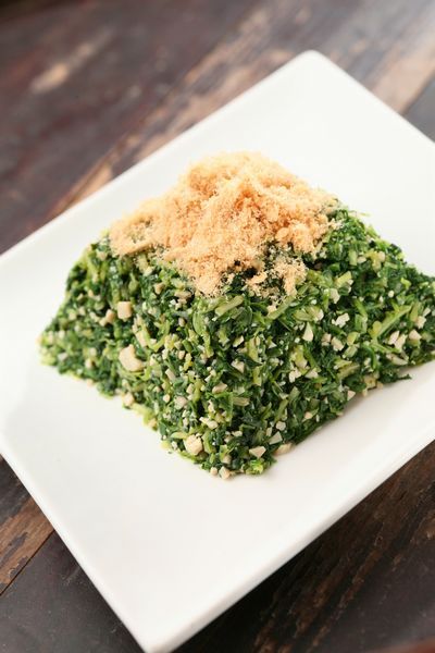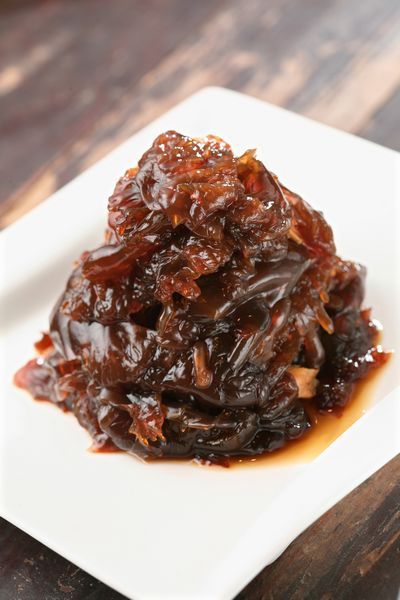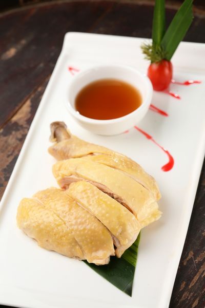 如果是喜欢鱼虾鲜腥那一口的人,满可以大着胆子尝试一下绍兴虾油鸡。鸡肉选用走地三黄鸡,在胡椒、姜水和净水里面三浸三泡,最后封油,油润的鸡皮和嫩滑的鸡肉入口鲜美,但是配这个酒,用的一定要是小虾米发酵了30天沁出来的虾油,雷司令的热带水果和蜂蜜味与虾油重重的咸虾味互相呼应,而甜润的口感让鸡肉柔嫩的质地越发突出。