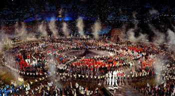图为第三十届夏季奥林匹克运动会开幕式现场。记者 陈晓伟 摄 |