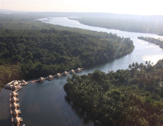 由12个圆顶帐篷组成的“四河水上客栈”就像系在湄公河岸边的一条长长的锁链,在荒僻的雨林地带显得有一点点奢华。每间45平米大小的客房都配备无线网络连接、迷你酒吧和宽屏电视机等设施。客栈对于环保的重视程度让人印象深刻。这里竟然建有一个污水处理厂,而且非环保材料不用。让客栈引以为豪的是,在他们的影响下,当地人和游客都意识到环保的重要性。